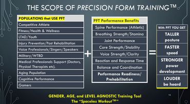 I. HUMAN PERFORMANCE OPTIMIZATION / INTEGRATION PROGRAMS:β will introduce how Precision Form Trainingβ’ (PFT) can help to target train specific Human Performance QUALITIES and Operational Readiness SKILLS: